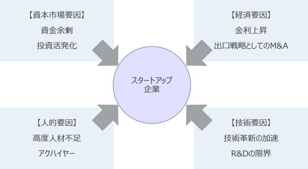 スタートアップ買収の増加には、複数の構造的要因が存在します。