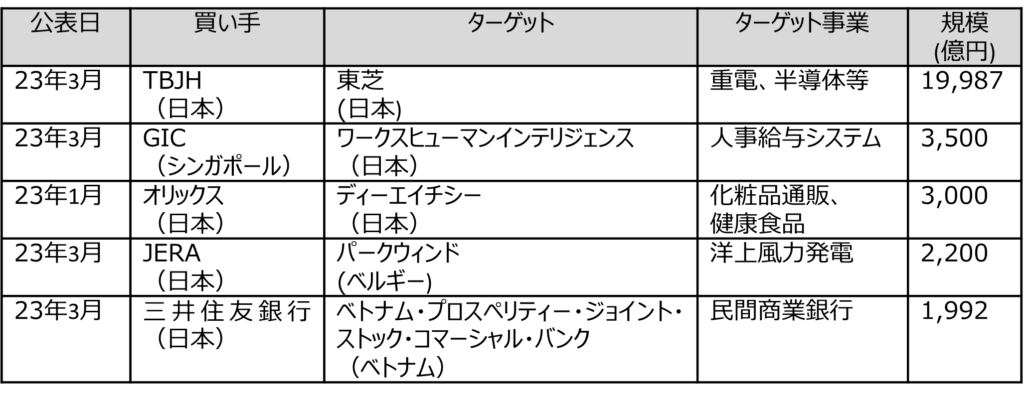 2023年1~3月期の主なM&A案件は以下の通りです。