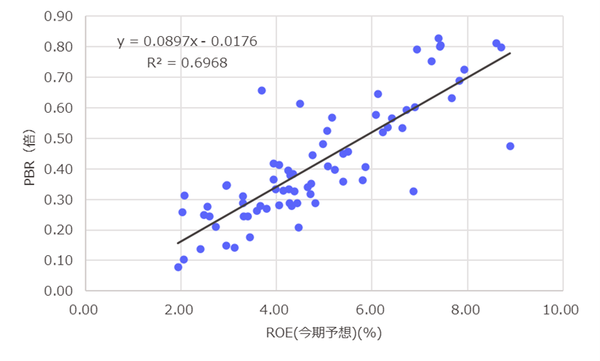ROEとPBRの関係性・・・地方銀行業界を例に見ると